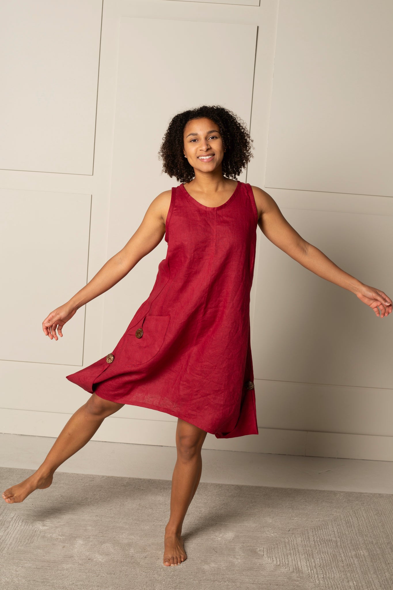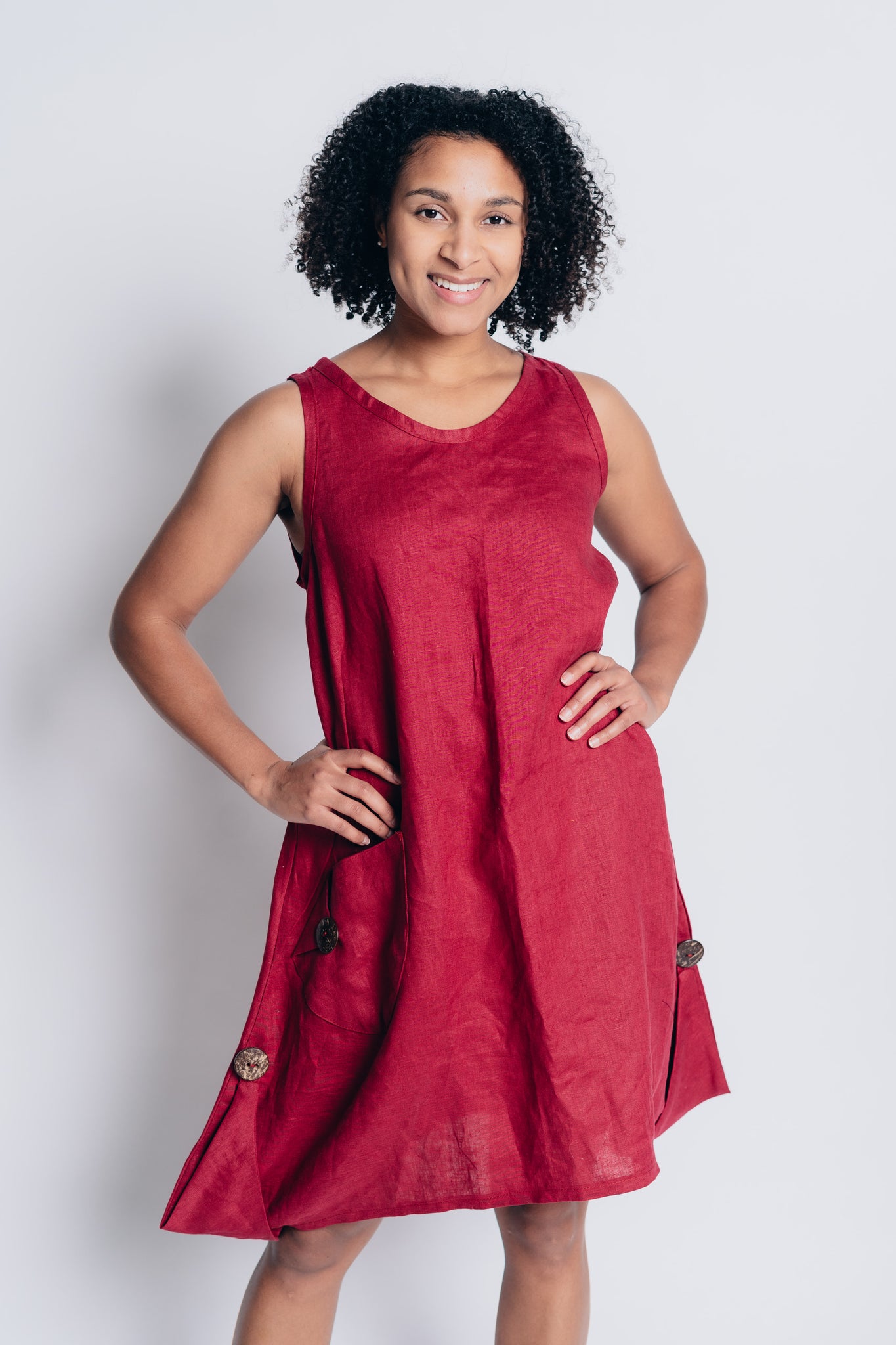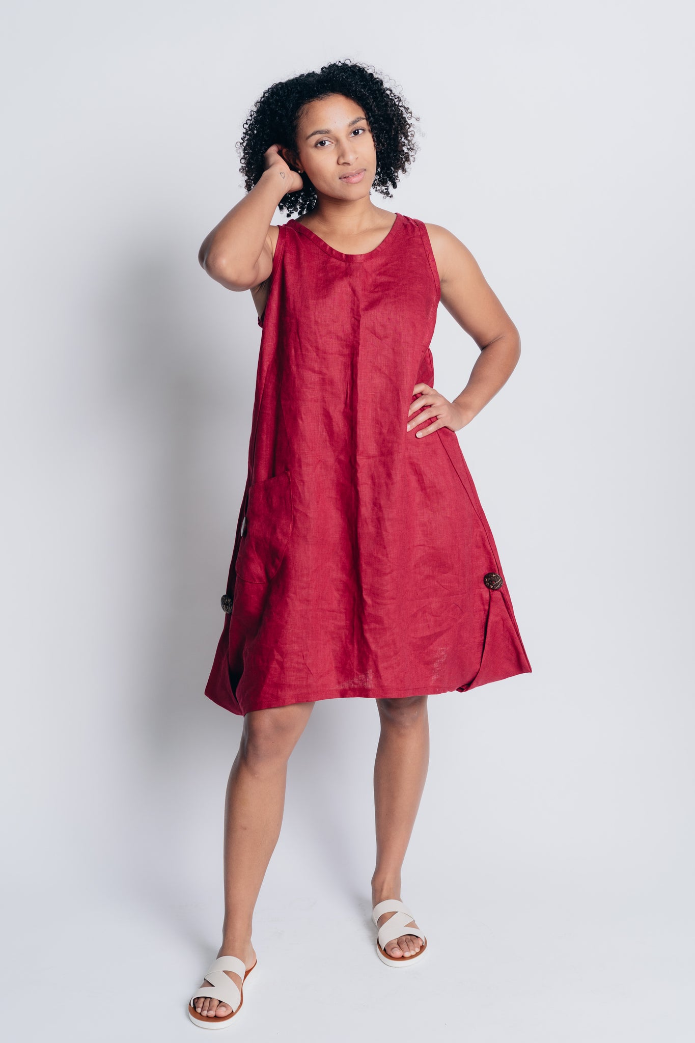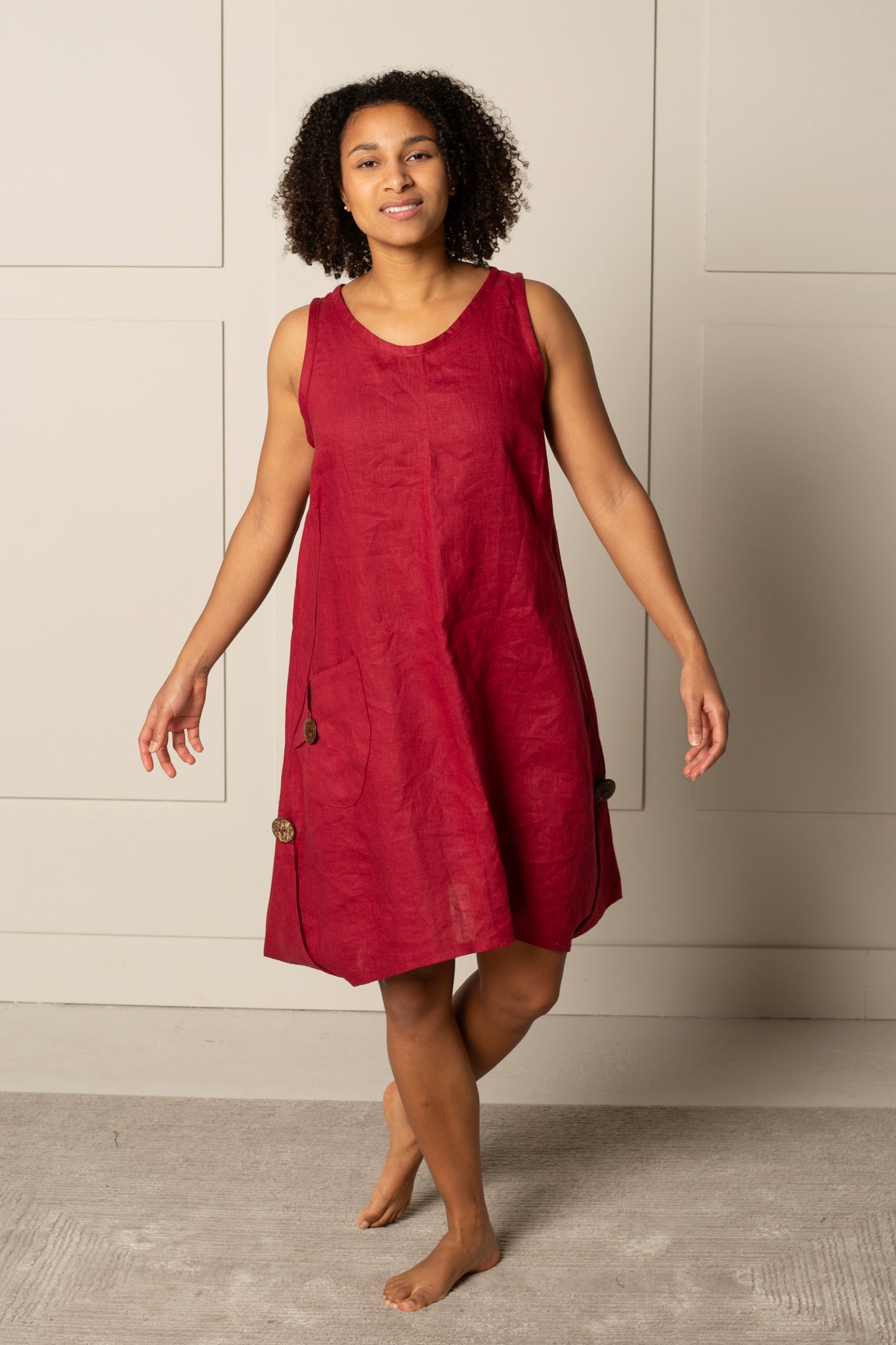 ESSENTIAL JENNA DRESS | LINEN- BERRY RED